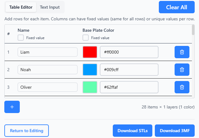 Paste a list of customer names, load your template, and export. TextCraft3D generates individually named, print-ready STL or 3MF files for every order in one run. What used to take four hours now takes under twenty minutes.